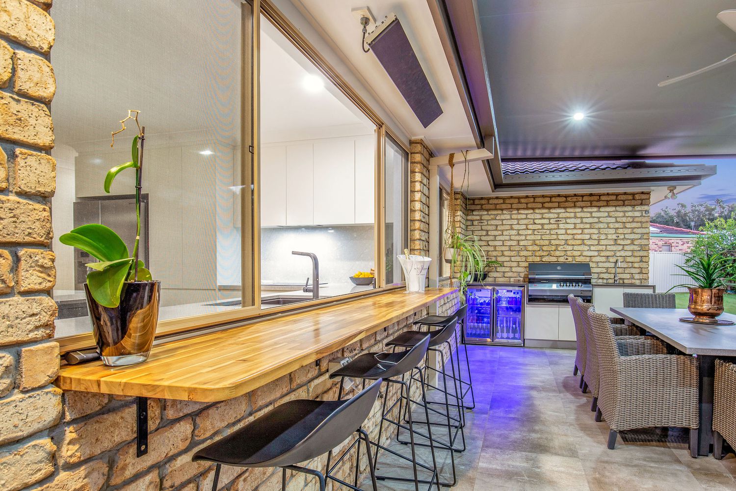 • Outdoor marine grade kitchen with stone bench & built-in BBQ