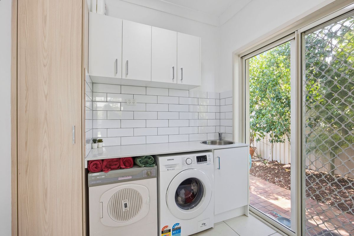 • Well-designed laundry with subway tiles & good storage