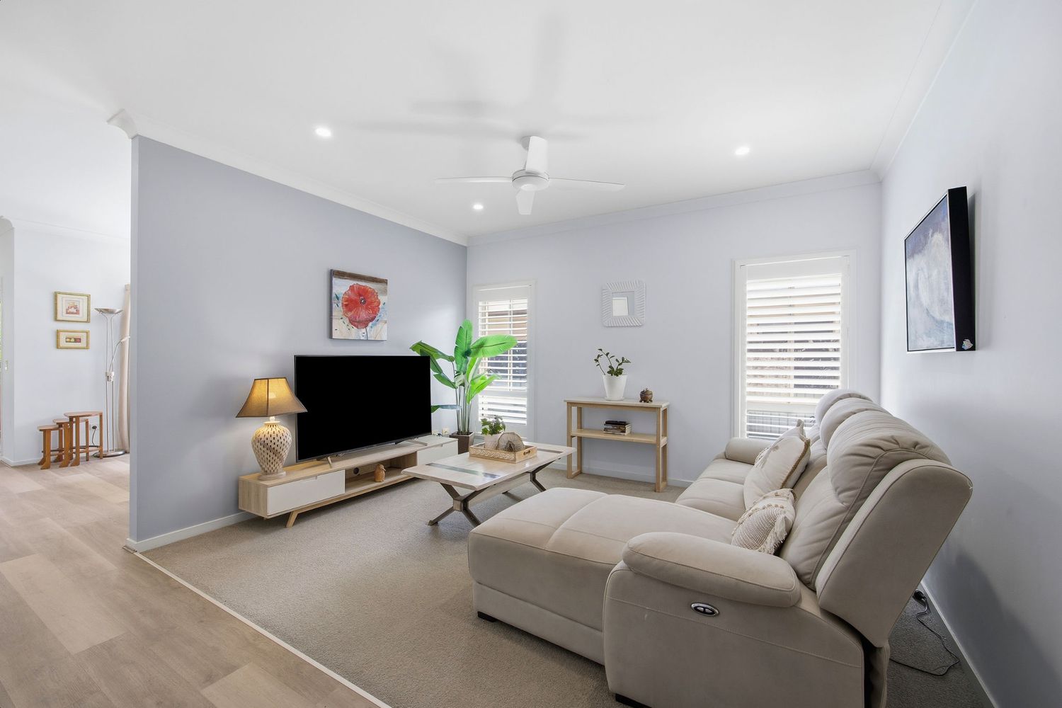 Combination of quality Hybrid flooring in living as well as carpet in bedrooms & formal lounge