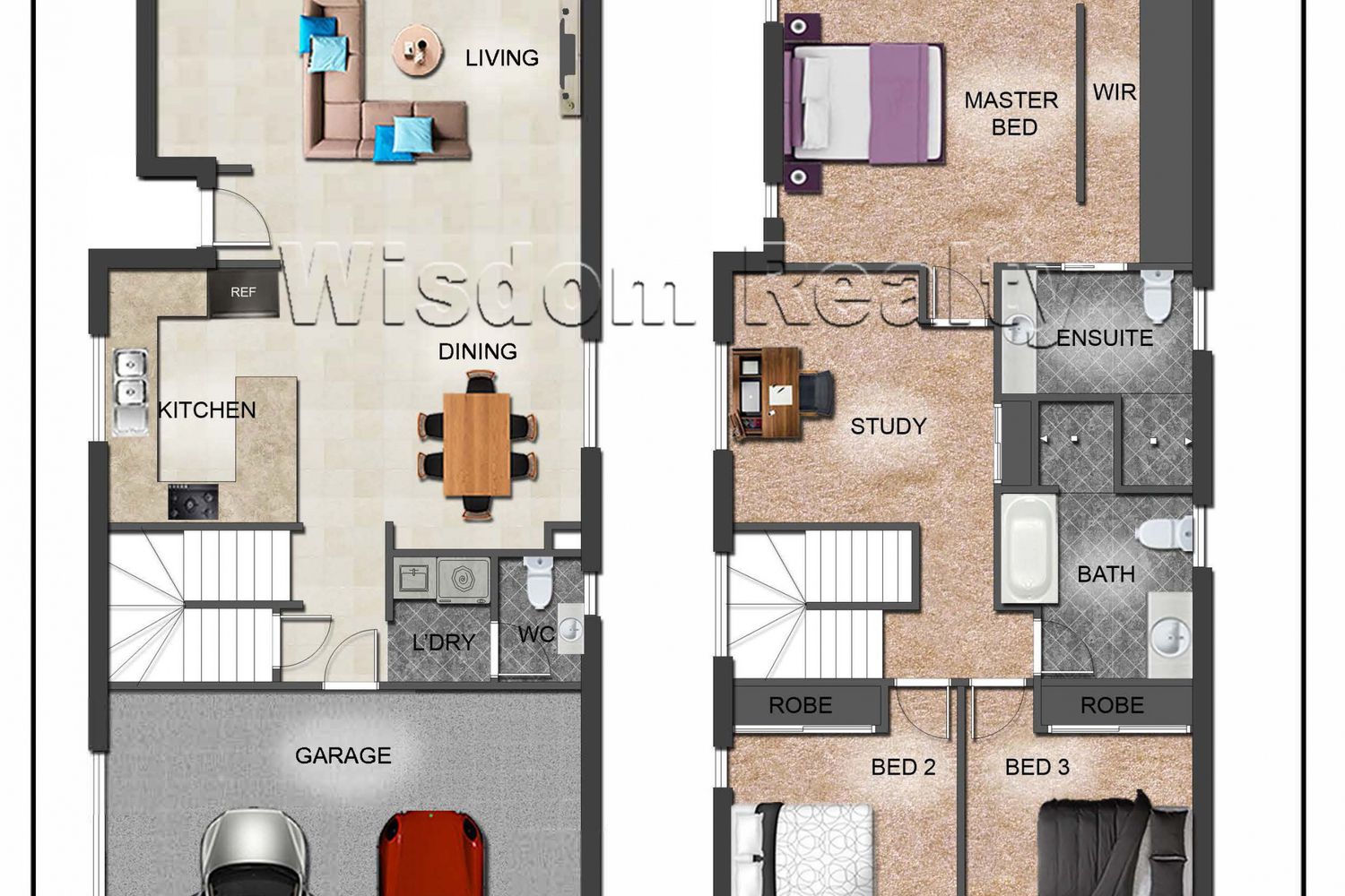 • 3 bedrooms , 2 bathrooms and a powder room