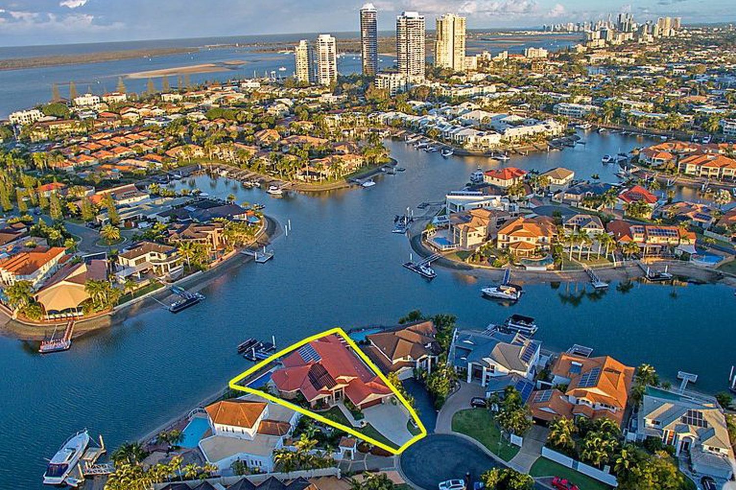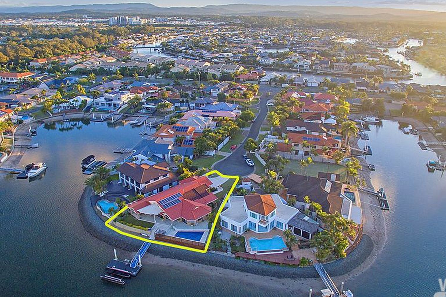 Your search will end here when you view this complete, quality crafted home, ideally positioned on a near 30mt wide waterfront 739 m2 fan-shaped allotment, at the horn of Folkstone Place with wide expansive views from all living areas & main bedroom