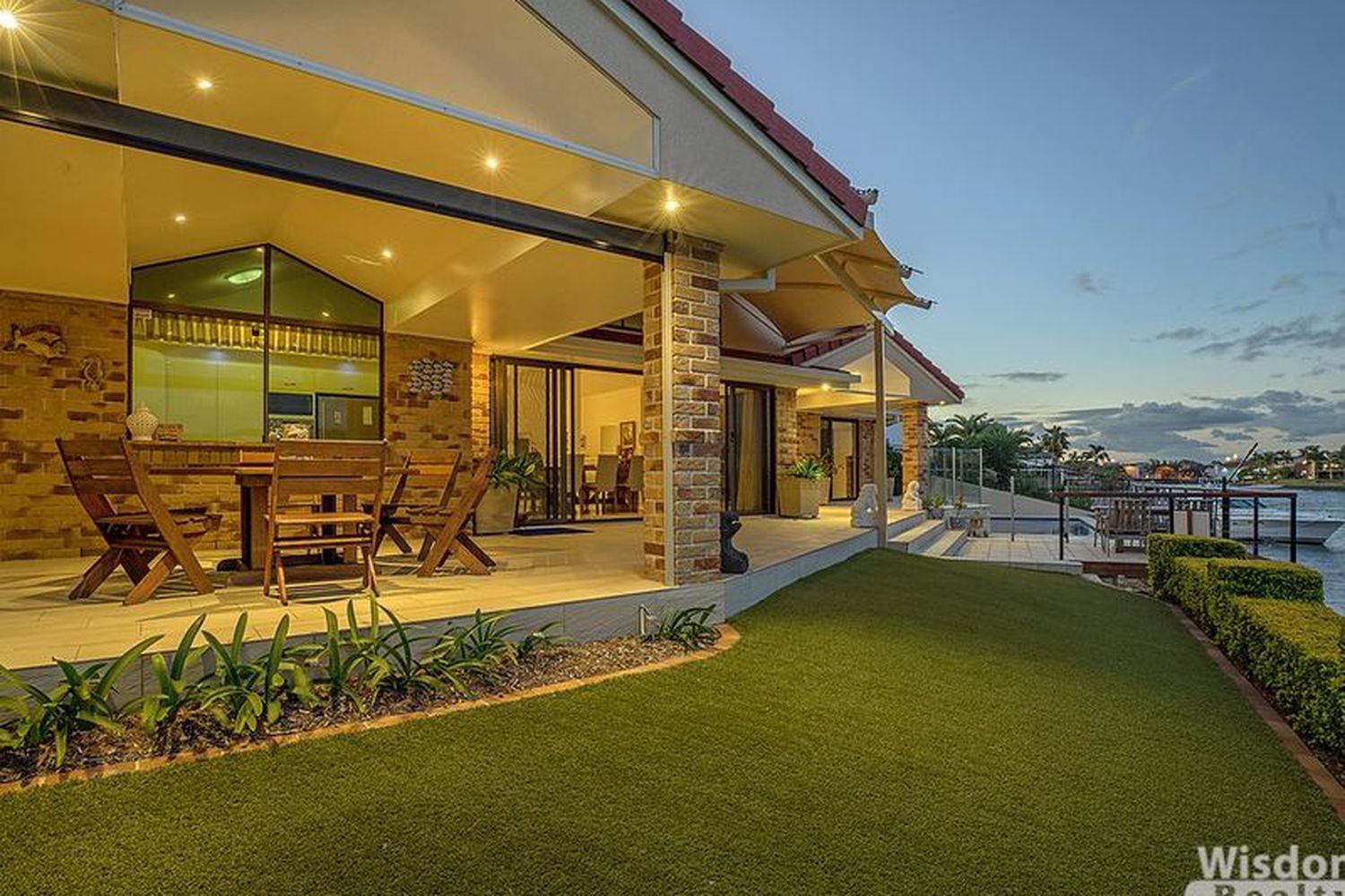 • Tropical low care landscaped gardens with quality easy care AstroTurf