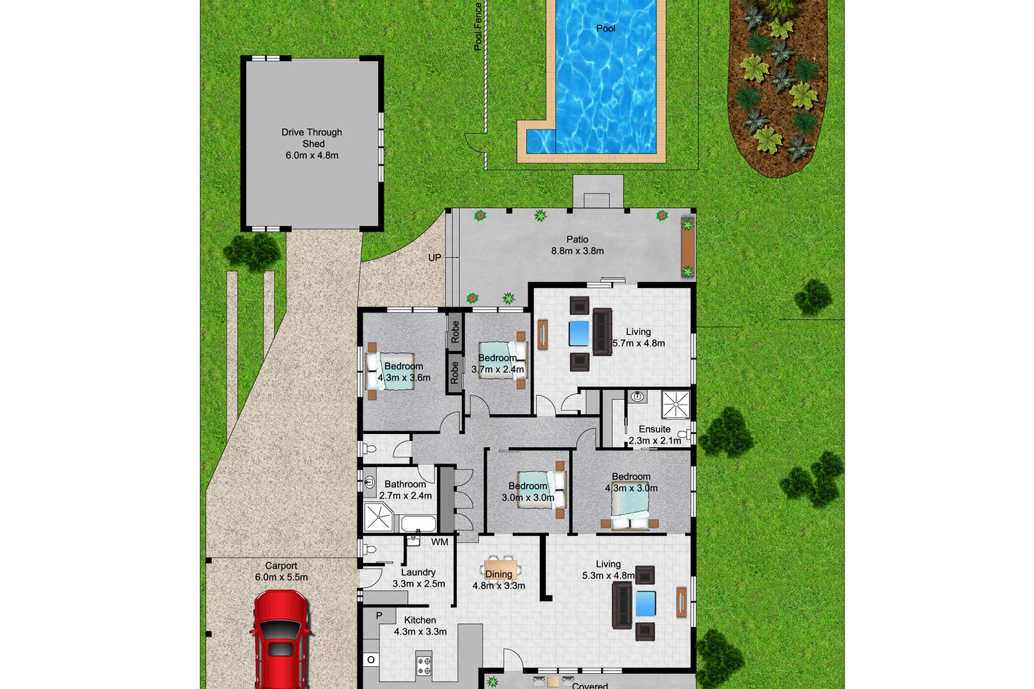 • BIG fenced concrete pool will keep your family entertained all year