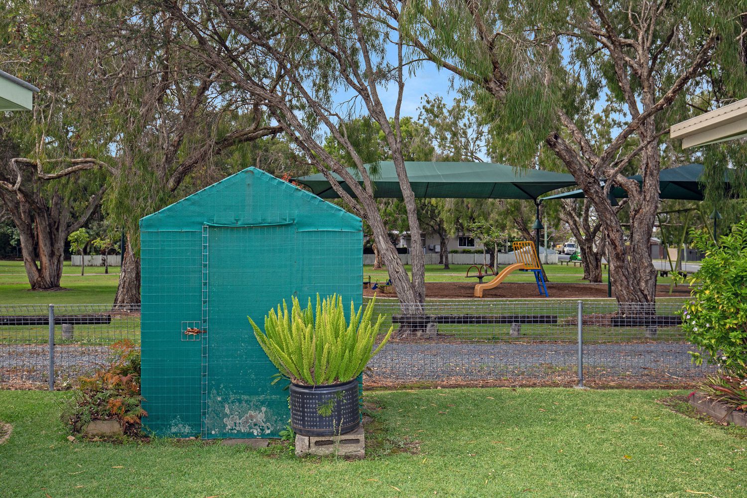 • Shade clothed veggie room at back